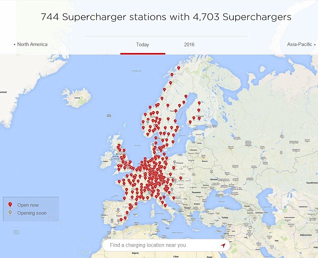Tesla töltőállomások Európában