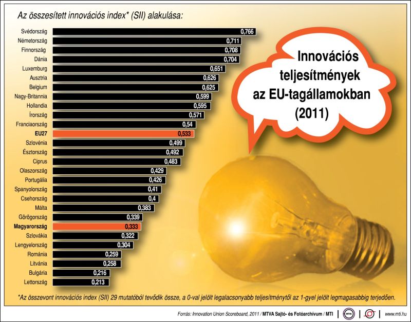 Innovációs teljesítmények az EU-tagállamokban (infografika: MTI)
