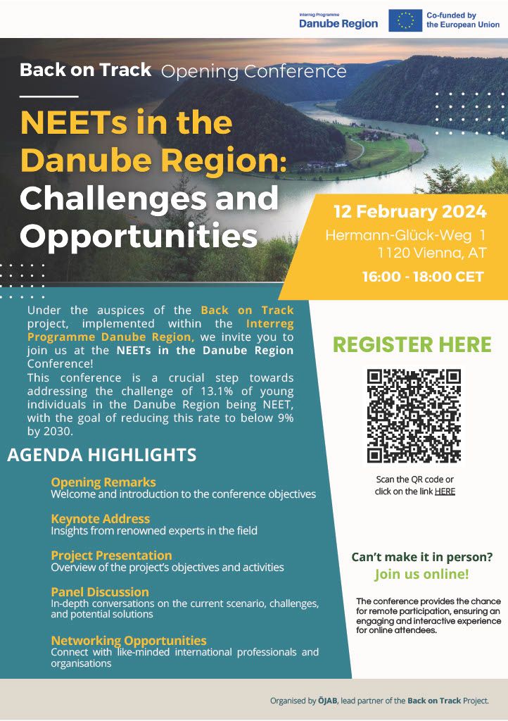 2024. február 12-én, Bécsben kerül megrendezésre az Interreg Duna Transznacionális Program keretében megvalósuló Back on Track projekt nyitókonferenciája. A projekt fókuszában olyan munkanélküli fiatalok állnak, akik nem részesülnek oktatásban vagy képzésben.