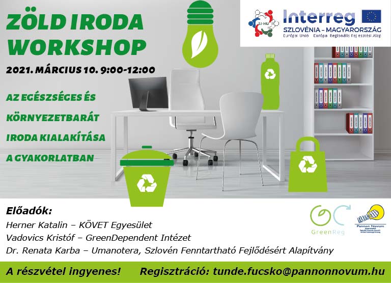 2021. március 10-én kerül megrendezésre a Greenreg projekt második, tematikus workshopja Zöld Iroda a gyakorlatban címmel.