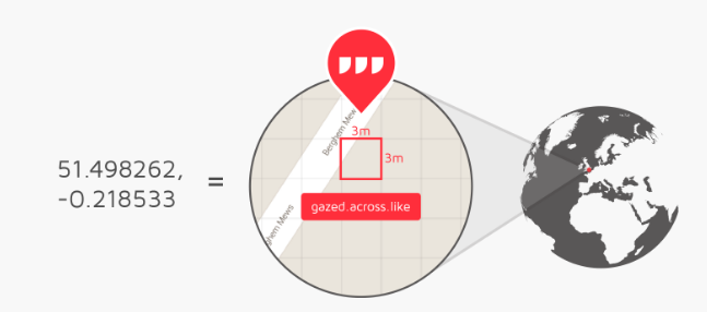 A rendszerben minden 3 x 3 méteres terület kap egyedi azonosítót, összesen 57 billió ilyen négyzetre osztva a Föld területét. Ilyen azonosítóval persze eddig is rendelkeztünk, a szélességi és hosszúsági koordináták segítségével tetszőleges pontossággal azonosíthatunk pontokat, ezek használata azonban nehézkes, a sok szám pedig hibázásra is lehetőséget biztosít.